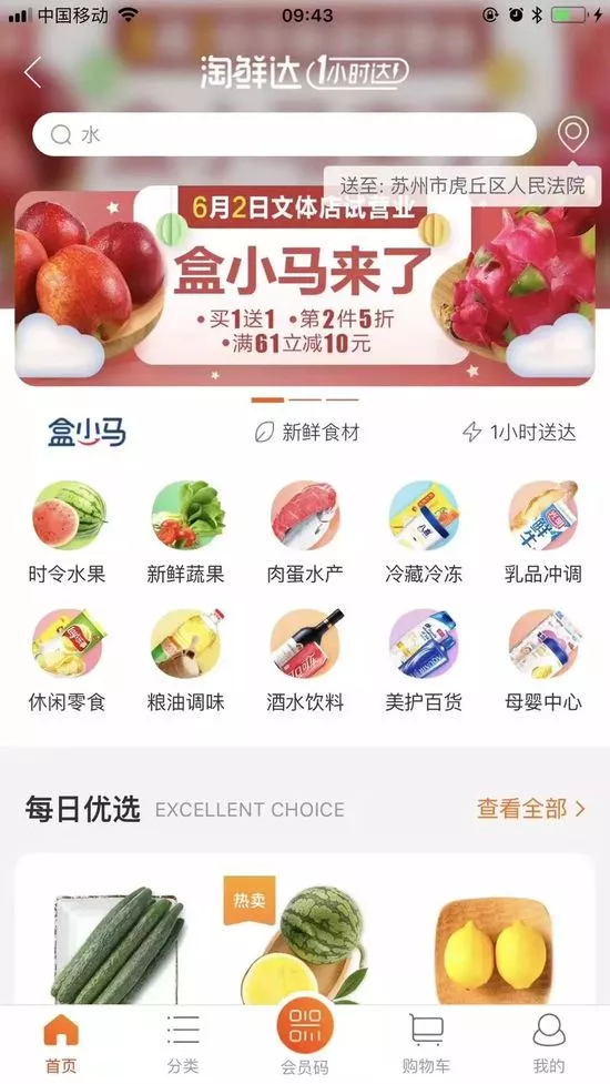 同時(shí),也不需要再下載盒馬APP,只需要安裝手機(jī)淘寶,允許淘寶使用位置,然后打開(kāi)淘寶首頁(yè)就可以看到【淘鮮達(dá)】,直接戳進(jìn)去買東西就行了。每天的首單都免配送費(fèi),最快一小時(shí)送達(dá)。