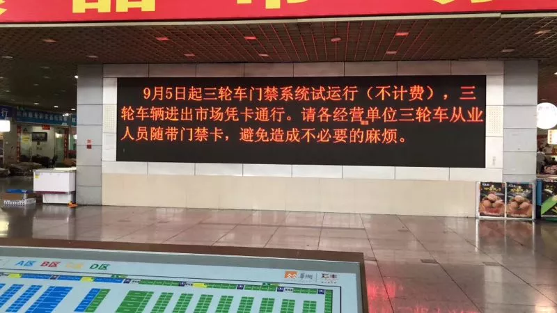 小冰了解發(fā)現(xiàn),原由是市場(chǎng)發(fā)布的一則通知:9月5日起,三輪車門禁系統(tǒng)試運(yùn)行(不計(jì)費(fèi)),三輪車進(jìn)出市場(chǎng)憑卡通行。