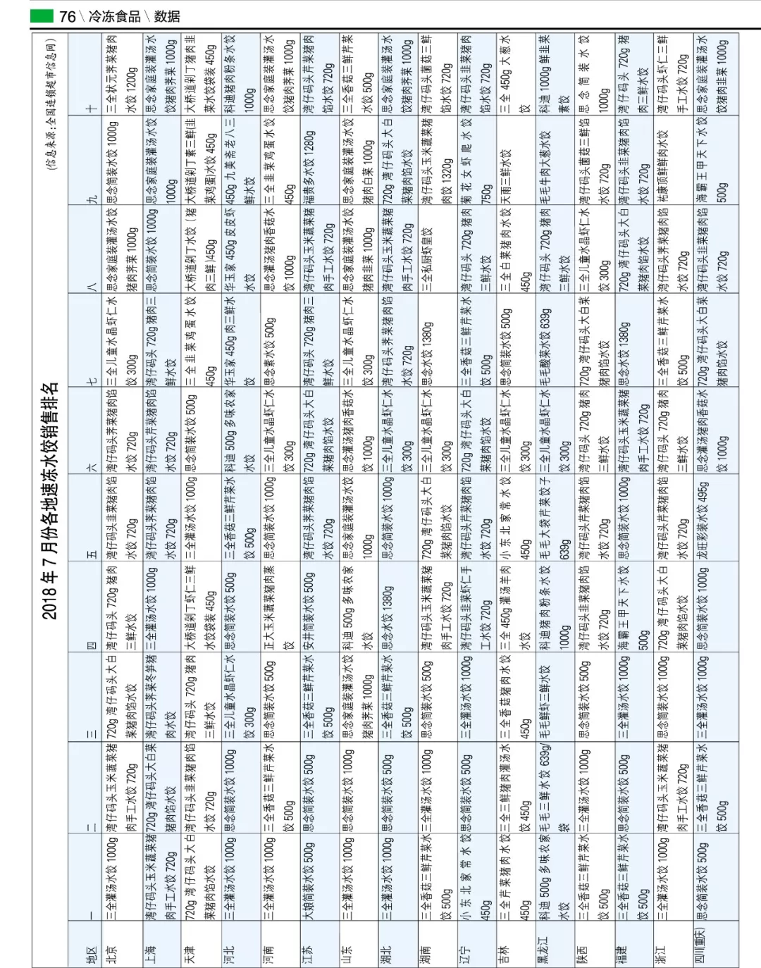 來源: 冷凍食品網(wǎng) 發(fā)布者:編輯▼2018年7月份各地速凍水餃銷售排名